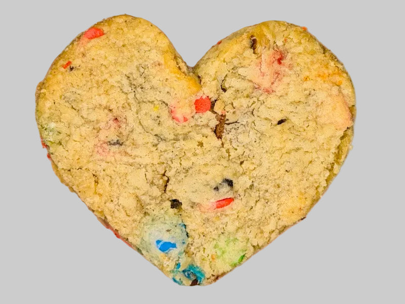 💣 Love Bomb: The ultimate heart-shaped cookie. Loaded with M&Ms, sprinkles, and crunchy Oreo chunks.