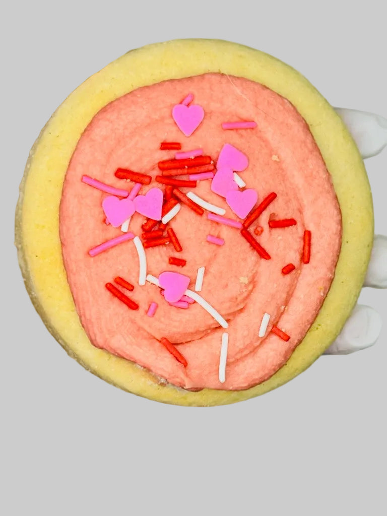 ✨ Be Mine Vanilla: Pure, nostalgic bliss. Classic sugar cookie paired with creamy vanilla frosting and adorable heart-shaped sprinkles.